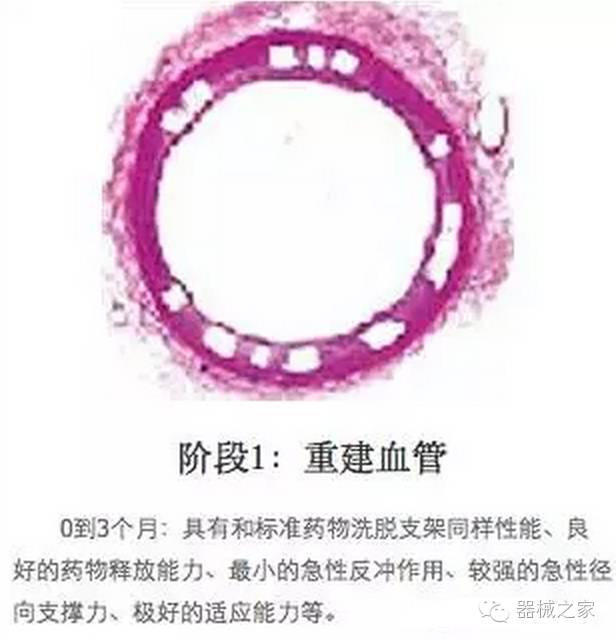 第四代支架設(shè)計(jì)理念是:支架植入后的一段時(shí)間內(nèi),它會(huì)對(duì)狹窄的冠脈血管進(jìn)行機(jī)械性支撐,同時(shí)釋放出藥物,防止再狹窄,之后支架即緩慢降解并完全被組織吸收,血管結(jié)構(gòu)以及舒縮功能完全恢復(fù)至自然狀態(tài)。