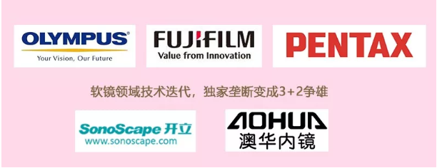 按內(nèi)鏡醫(yī)師觀點,術前術后都看看腫瘤的邊界更放心,超聲內(nèi)鏡比放大內(nèi)鏡更實用,超聲內(nèi)鏡將會普及!于是,跨產(chǎn)品組合成了內(nèi)鏡廠家發(fā)展的必經(jīng)之路,奧林巴斯早期與日本阿洛卡彩超合作,后來逐步自己OEM貼牌生產(chǎn)超聲內(nèi)鏡;富士膠片干脆收購曾經(jīng)是全球便攜彩超領域的第一品牌的美國索諾聲公司,不知道是不是為了內(nèi)鏡業(yè)務的配套考慮;賓得與日立超聲簽署戰(zhàn)略合作,賓得超聲內(nèi)鏡全球打包日立二郎神高端彩超,超聲內(nèi)鏡的細分優(yōu)勢直接保住了賓得的全球存在感;開立醫(yī)療結合自身超聲基礎,在國家項目扶持下也推出超聲內(nèi)鏡產(chǎn)品,隨著開立產(chǎn)品推出,超聲內(nèi)鏡細分領域又形成全球3+1的市場格局, 一個壟斷的軟式內(nèi)鏡市場加上實力雄厚的彩超廠家,又形成新的技術壁壘和廠家同盟!