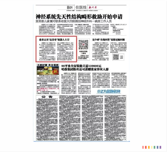 據(jù)《新晚報(bào)》2019年8月8日第B01版報(bào)道,27歲的患者小卓(化名)發(fā)現(xiàn)頸部有腫物,當(dāng)?shù)蒯t(yī)院診斷為“甲狀腺占位”,需進(jìn)行手術(shù)治療。該患者來到哈爾濱醫(yī)科大學(xué)附屬第四醫(yī)院就診點(diǎn)名希望使用達(dá)芬奇機(jī)器人進(jìn)行甲狀腺切除手術(shù)。在主任陳之顯及其團(tuán)隊(duì)一個(gè)多小時(shí)的努力下,手術(shù)順利完成。這是我國首例“達(dá)芬奇”Xi機(jī)器人甲狀腺切除術(shù),這臺(tái)手術(shù)的順利完成,標(biāo)志著哈醫(yī)大四院機(jī)器人微創(chuàng)甲狀腺手術(shù)在全國處于先進(jìn)行列。