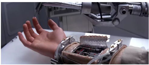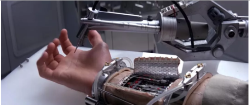 影視作品《星球大戰(zhàn)—帝國反擊戰(zhàn)》中,盧克·天行者斷臂后曾安裝過一款高科技假肢,圖片呈現(xiàn)的是機(jī)器對(duì)手臂進(jìn)行意識(shí)感知測(cè)試,而現(xiàn)在它終于成真了