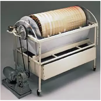 1943年,荷蘭人威廉?科爾夫(Willem Kolff)用一個(gè)木條制成旋轉(zhuǎn)的鼓桶,纏繞了30~40米醋酸纖維素膜,放到一個(gè)透析液缸里。患者的血液是從手腕動(dòng)脈進(jìn)入半透膜腸衣,通過(guò)轉(zhuǎn)動(dòng)的鼓推動(dòng)血液體外循環(huán),置于鹽水浴中攪拌。由于腸衣是半滲透的,尿素等廢物被排出,大分子蛋白被保留。然后將經(jīng)滲透后“干凈” 的血液輸送回患者體內(nèi),就這樣“人類(lèi)第一臺(tái)”透析機(jī)便誕生了。