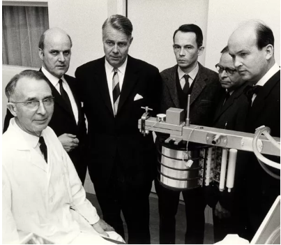 第一次血管通路手術(shù)發(fā)生在1948年,尼爾斯Nils Alwall(1904-1985)(左一)和萊納特?奧斯特格林(Lennart ?stergren)(左四),在瑞典名校隆德大學(xué)對(duì)轉(zhuǎn)鼓人工腎進(jìn)行了改進(jìn),使其能通過(guò)負(fù)壓進(jìn)行超濾。但由于各種并發(fā)癥,1949年被迫停止了該類(lèi)手術(shù)。