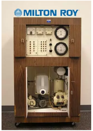 世界上第一臺透析液配比系統(tǒng)是在1963年,由伊利諾伊大學(xué)化學(xué)博士阿爾伯特·拜波(Albert Babb)發(fā)明,他采用了世界上第一臺計(jì)量泵的發(fā)明者,同時(shí)也是全世界最大的計(jì)量泵制造商Milton Roy的泵來為透析液配比。他將原型機(jī)命名為Mini-1,其最大的特點(diǎn)是可作為便攜式設(shè)備由單人使用。