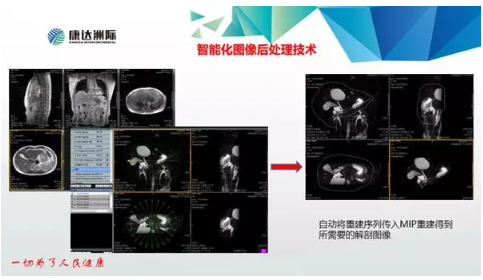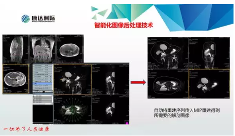 康達“智速”磁共振采用的智能化圖像后處理技術無需人工干預,自動將重建序列傳入MIP重建得到所需要的解剖圖像。在AI技術助力下,能完成五期動態(tài)增強,單期掃描時間僅需15秒。