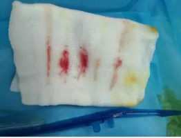 M20引導下,抽吸針找到右側(cè)宮角處再次清掃