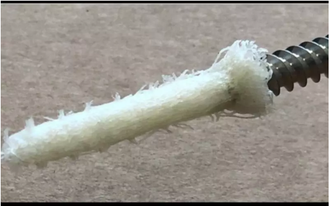TheraFuze DBF纖維錨完全由該公司的脫礦皮質(zhì)骨纖維制成。測試表明,與沒有纖維錨的螺釘相比,它的拉拔力增加了一倍多。一個翻修手術(shù)模型中進行的測試表明,它可以在不增加孔尺寸或使用任何其他材料的情況下恢復(fù)或改進原來的拉拔力。錨最初的尺寸適合與5.5、6.5和7.5毫米的螺釘一起使用。