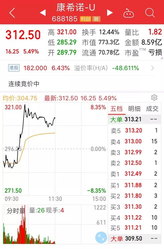 截止午間收盤,康希諾由跌轉(zhuǎn)漲5.49%,報(bào)價(jià)312.5元。