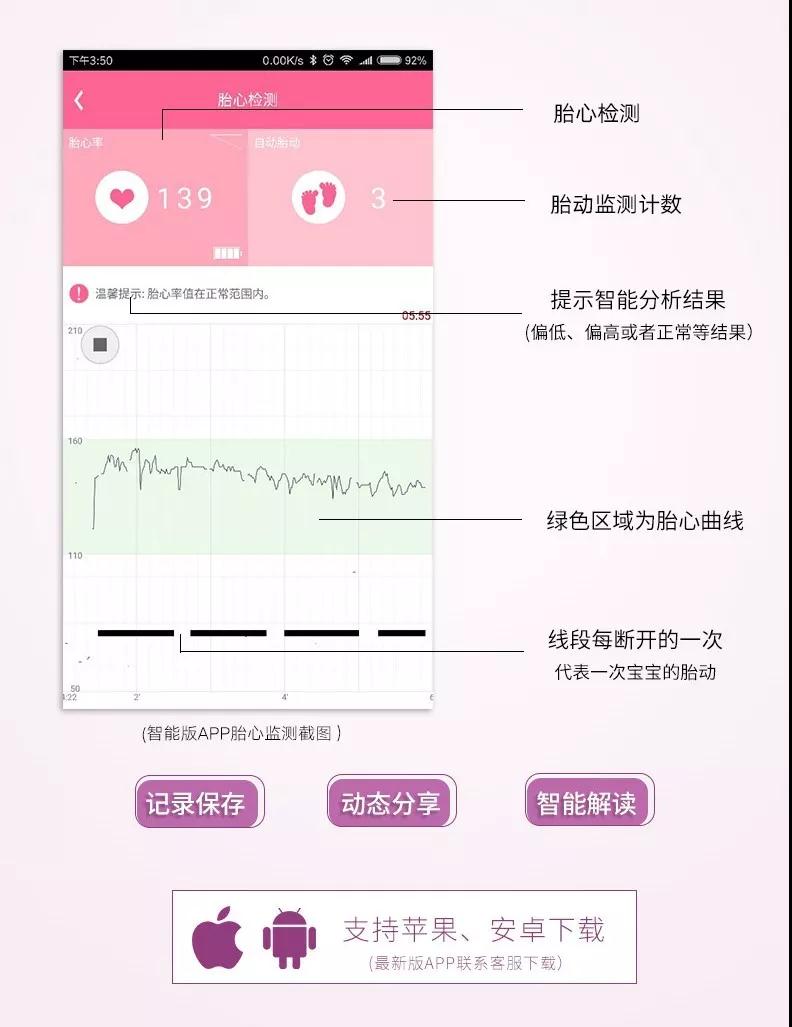 除了這些優(yōu)勢,SD1胎心多普勒儀還有一些“錦上添花”的功能:支持藍(lán)牙無線連接手機(jī)APP,實現(xiàn)更強(qiáng)大的功能:不僅可以實時顯示胎心率數(shù)值、胎動以及胎心率曲線,其檢測記錄還支持曲線回顧、播放回顧,并可通過連接APP將檢測記錄進(jìn)行分享。