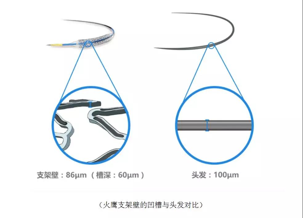怎樣把藥物完美地“保存”在支架上?經(jīng)過反復(fù)設(shè)計(jì)和比較,火鷹研發(fā)團(tuán)隊(duì)歷時(shí)15年,選擇并達(dá)成了技術(shù)上最難實(shí)現(xiàn)的一種方案——微槽包裹藥物,即在金屬支架表面用激光刻槽,再把藥物灌入槽內(nèi)。和傳統(tǒng)技術(shù)的區(qū)別在于,刻槽可防止涂層在輸送過程中脫落,藥物不會(huì)流失,且藥物抵達(dá)血管病變區(qū)后,能通過固定的槽位精準(zhǔn)釋放,大幅提高了有效性,也避免了浪費(fèi)。