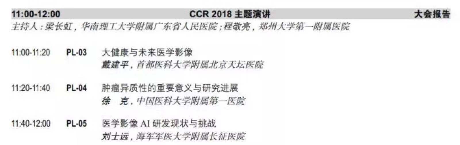此外,11月8日的CCR2018主題演講中《大健康與未來醫(yī)學(xué)影像》和《醫(yī)學(xué)影像AI研發(fā)現(xiàn)狀與挑戰(zhàn)》也值得一聽哦~