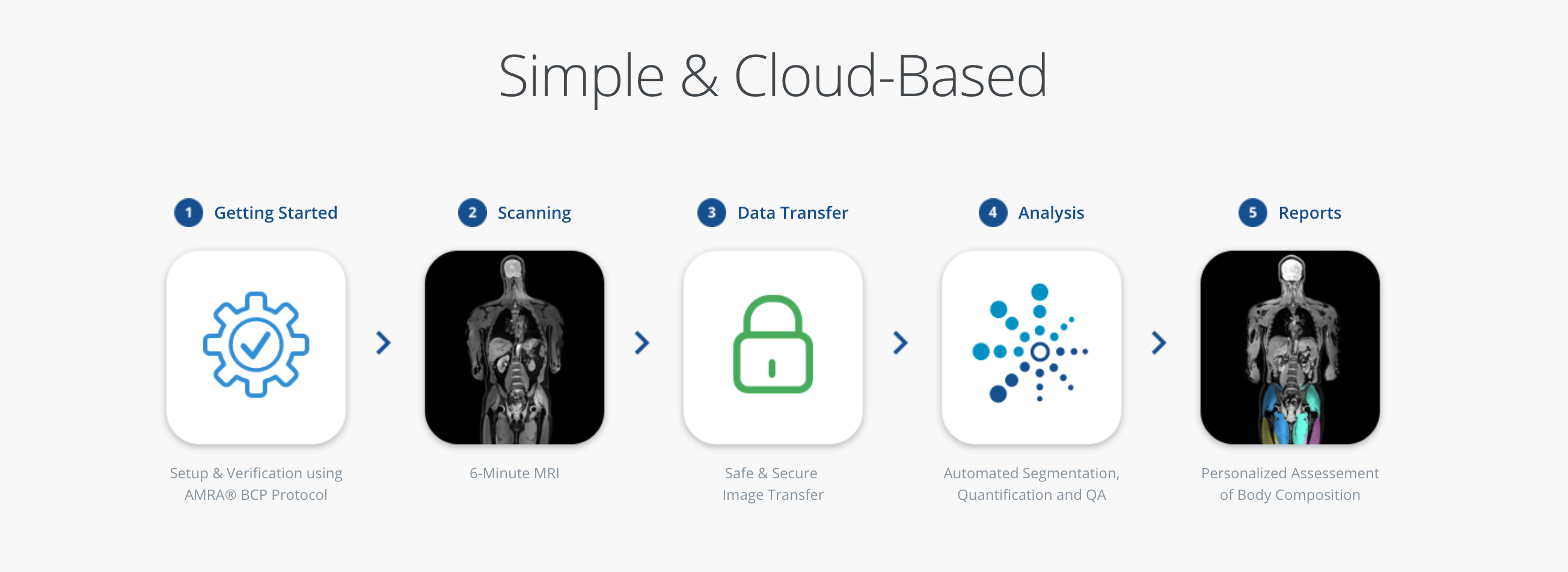 單次6分鐘MRI掃描,多次測量的自動分析,與其他成像協(xié)議和技術(shù)很好地集成。 AMRA Profiler確實(shí)需要兼容的MRI掃描儀,并且該公司與供應(yīng)商合作以確保安裝產(chǎn)品,以便接收每個獲得適當(dāng)掃描的患者的身體成分分析報告所需的交互非常少。