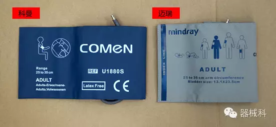 兩家都采用防水面料和薄膜氣囊??坡伾?,不知道是不是因為深色耐臟。袖套看起來要厚點,不過摸起來也一樣柔軟。邁瑞是不經(jīng)臟的白色,拿起來會發(fā)現(xiàn)更柔軟?;蛟S是深色顯得明亮,對比之下,總覺得邁瑞的袖套看起來舊舊的。