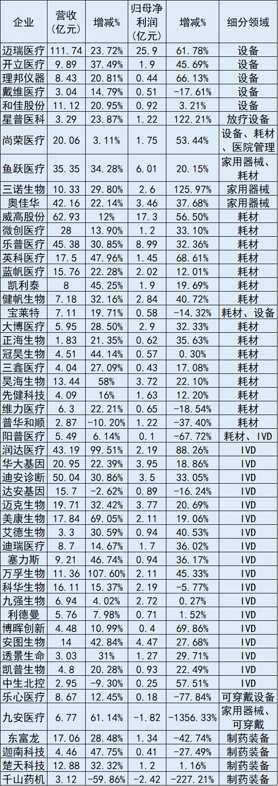 有超過9成的國內(nèi)械企均實現(xiàn)了營收正增長,其中近7成的營收同比增速還在20%以上,像潤達醫(yī)療和萬孚生物還實現(xiàn)了營收翻倍。