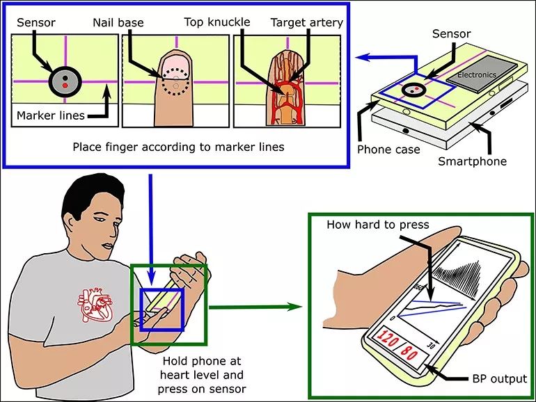 目前這項研究有了新的進(jìn)展,來自密歇根州立大學(xué)和馬里蘭大學(xué)的研究人員發(fā)明了一種可以集成到智能手機的血壓傳感器,只需按壓指尖即可完成血壓測量。