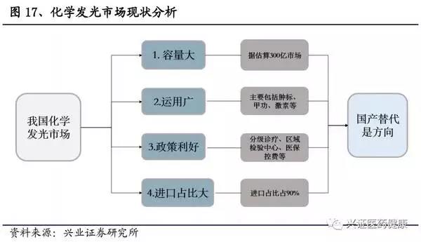 導(dǎo)語:此報告詳細描述化學(xué)發(fā)光行業(yè)整體情況,分析競爭格局,指出進口替代是行業(yè)發(fā)展方向。把國產(chǎn)和進口產(chǎn)品進行對比,對進口替代中行業(yè)的痛點進行闡述。在成文過程中,調(diào)研多家醫(yī)院,檢測終端及經(jīng)銷商,對一手數(shù)據(jù)進行分析,得出較切實的結(jié)論。