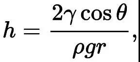 把一根細(xì)細(xì)的玻璃管的一端垂直放進(jìn)一個(gè)水盤(pán)子里,水在玻璃管里面就會(huì)因毛細(xì)作用而上升,上升的高度可以由Jurin定律來(lái)計(jì)算[4]: