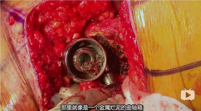 Tower 立刻進行了髖關(guān)節(jié)重置,在重置手術(shù)的過程中,當醫(yī)生取出原來的那塊假體時,發(fā)現(xiàn)那里就像是一個金屬爛泥的曲軸箱,關(guān)鍵的韌帶——髖關(guān)節(jié)囊已經(jīng)溶解了。