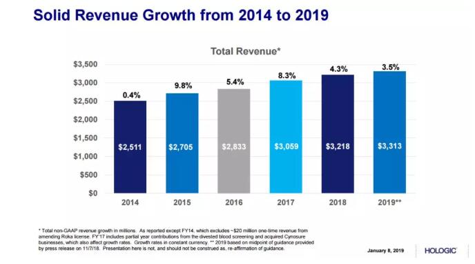 2016到2018年對于豪洛捷是重新調(diào)整步伐的重要幾年,其先后剝離了業(yè)務(wù)不太理想的血篩產(chǎn)品線,又通過并購Faxitron 和Focal加強了在數(shù)字化成像領(lǐng)域的研發(fā)能力,完善其在乳房健康業(yè)務(wù)的核心產(chǎn)品線。2018年9月自愿決定暫停營銷醫(yī)美產(chǎn)品線TempSure Vitalia以消除不良影響。豪洛捷副總裁Michael J. Watts 表示:公司將調(diào)整醫(yī)學(xué)美容方面的市場戰(zhàn)略,與臨床試驗機構(gòu)合作來規(guī)范化產(chǎn)品。讓我們拭目以待豪洛捷未來的精彩表現(xiàn)!