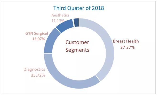 2018年第三季度,豪洛捷公司總營收收入為8.24億美元,同比增長2.2%,收入增長主要由乳腺健康和國際業(yè)務(wù)驅(qū)動。乳腺健康業(yè)務(wù)收入達(dá)3.079億美元,同比增長8.5%;國際業(yè)務(wù)收入(不包括收購的Cynosure業(yè)務(wù))達(dá)到1.683億美元,同比增長20.2%;診斷業(yè)務(wù)總收入為2.94億美元,同比增長3.6%;婦科手術(shù)收入為1.077億美元,同比增加1.1%。