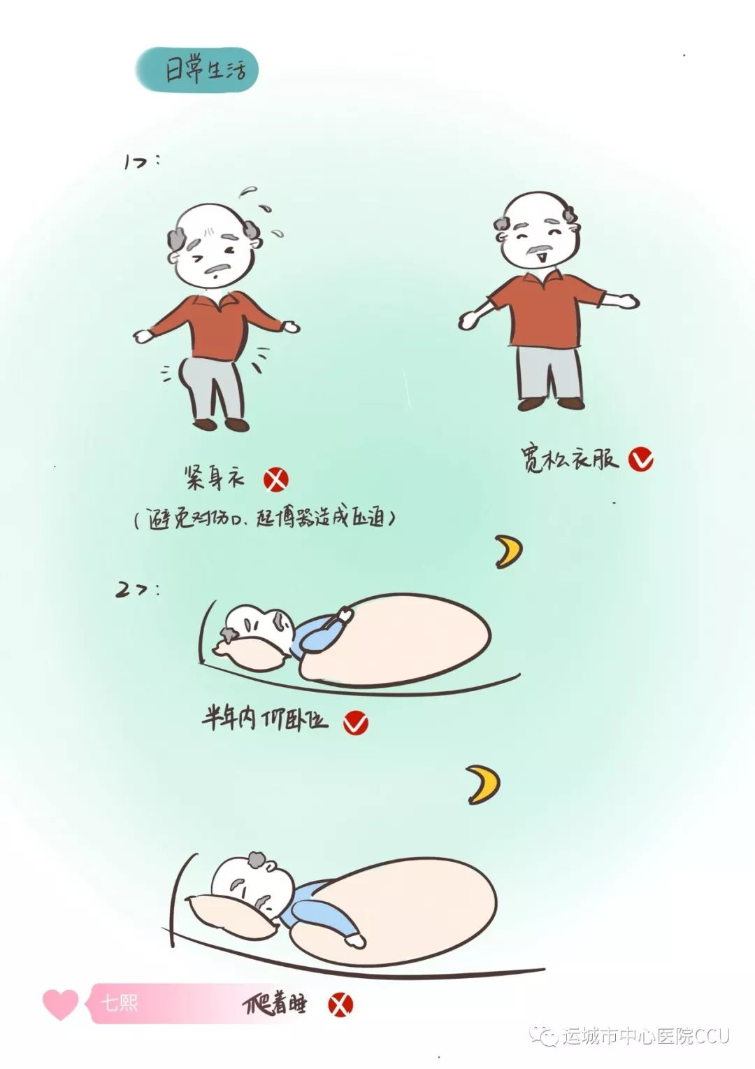 應(yīng)穿著寬松衣物、休息時保持仰臥位或側(cè)臥位,避免爬下睡對起搏器造成壓迫。