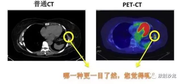 PET-CT等于PET+CT,包含PET(功能分子影像)與CT(解剖影像)的最優(yōu)化組合;即同時具有PET和CT的功能,但它絕不是二者功能的簡單疊加,因為PET與CT優(yōu)勢互補,“1+1>2”。PET-CT除了具備PET和CT各自的功能外,其獨有的融合圖像,將PET圖像與CT圖像融合, 可以同時反映病灶的代謝,可以早期診斷疾病的同時,明顯提高診斷的準確性。